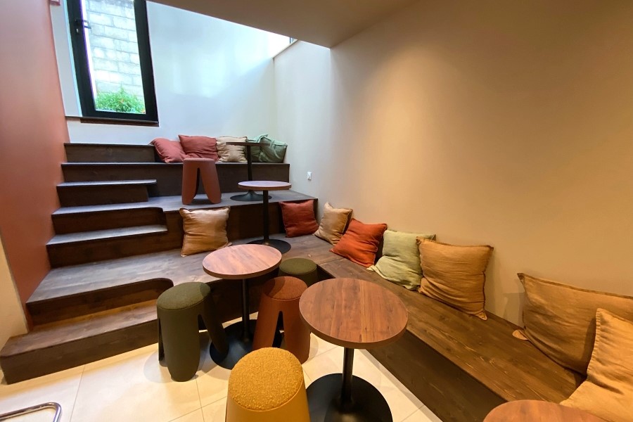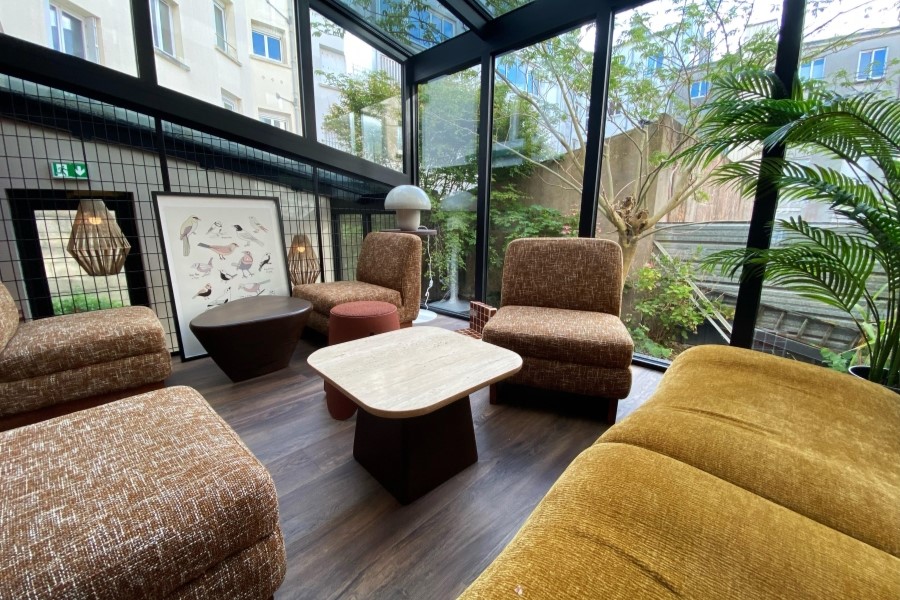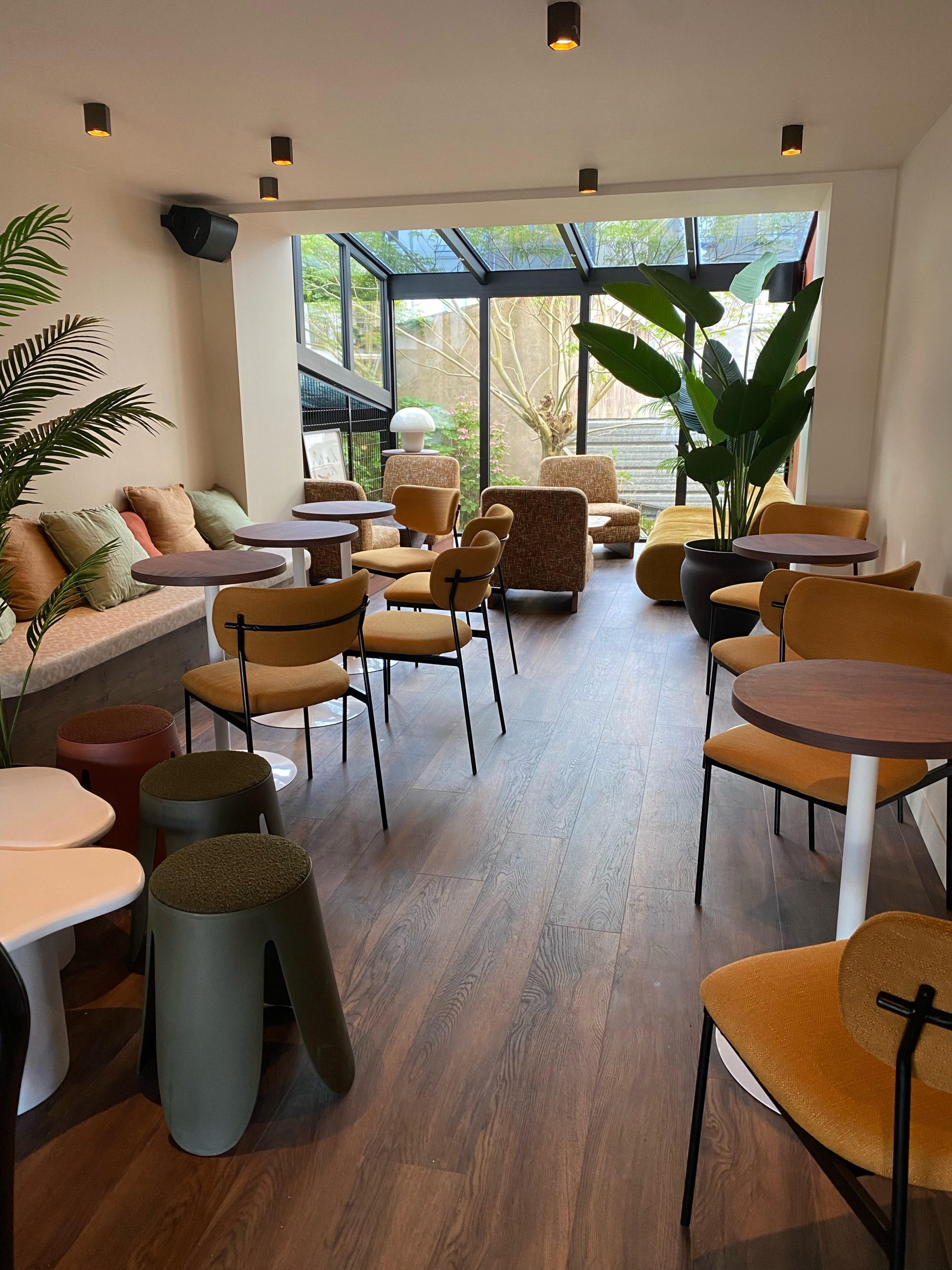 On y découvre désormais un espace convivial avec une décoration cosy des années 1970. Sur la cour arrière, les 3 dirigeants ont fait le choix d’installer une verrière qui apporte une belle luminosité au lieu.
